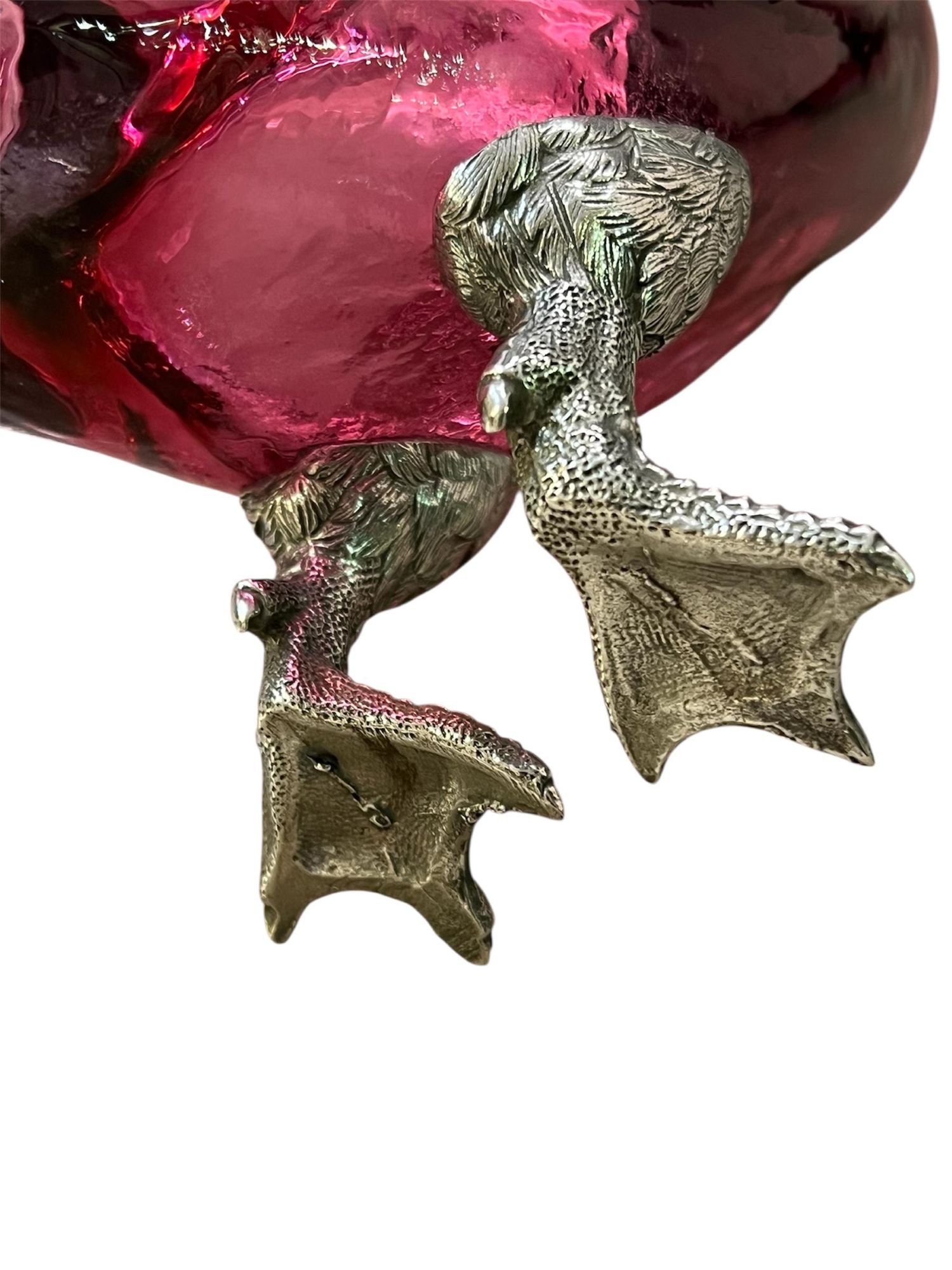 Silver Plated Duck Claret Jug - Circa 1990 The glass is cranberry colour