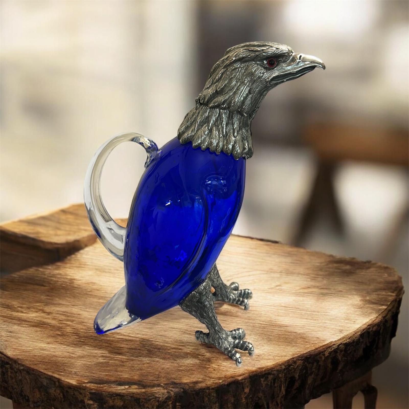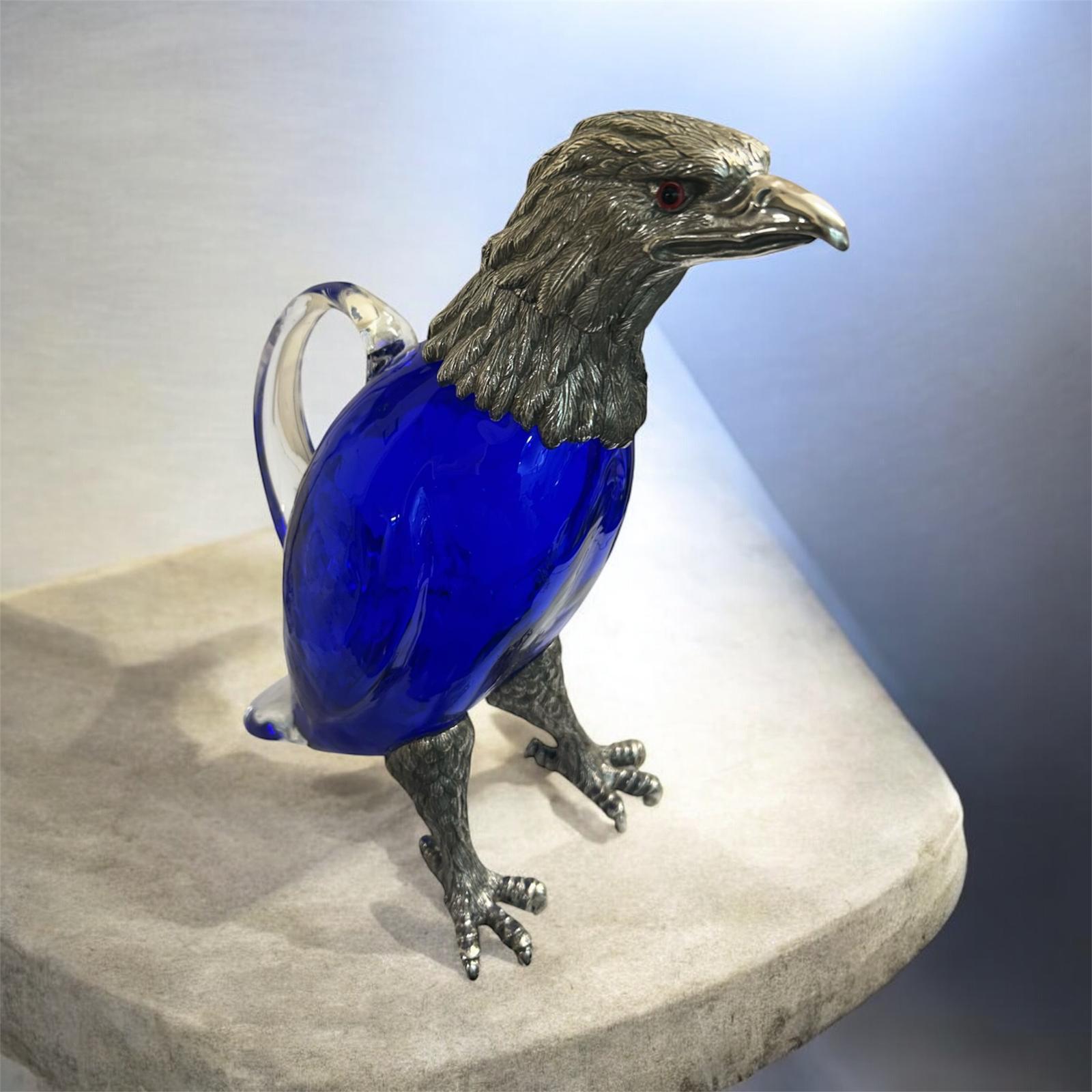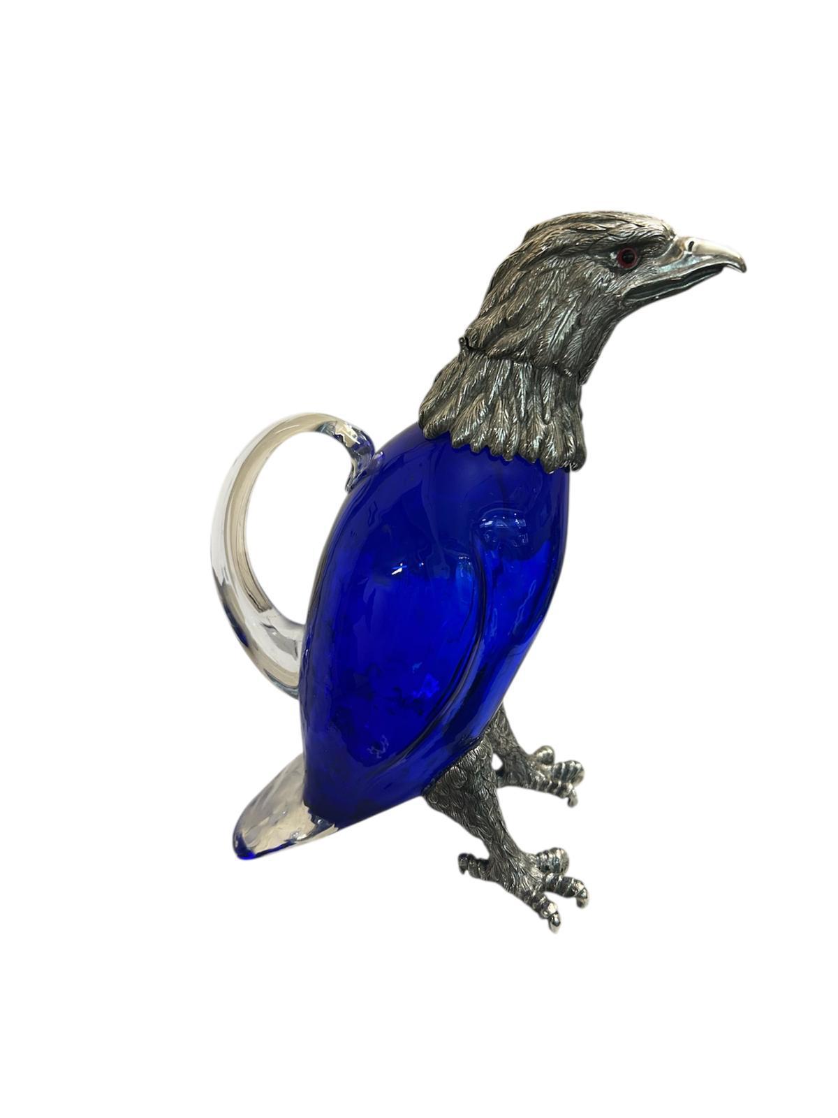 - Victorian style silver plated claret jug in the form of a standing eagle (blue glass)