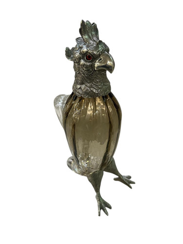 This spectacular pair of Silver & Glass decanters feature a unique interlocking design. They twist together and the interlocking shape gave them the name 'lovers' decanters. Each decanter has a Silver Collar.