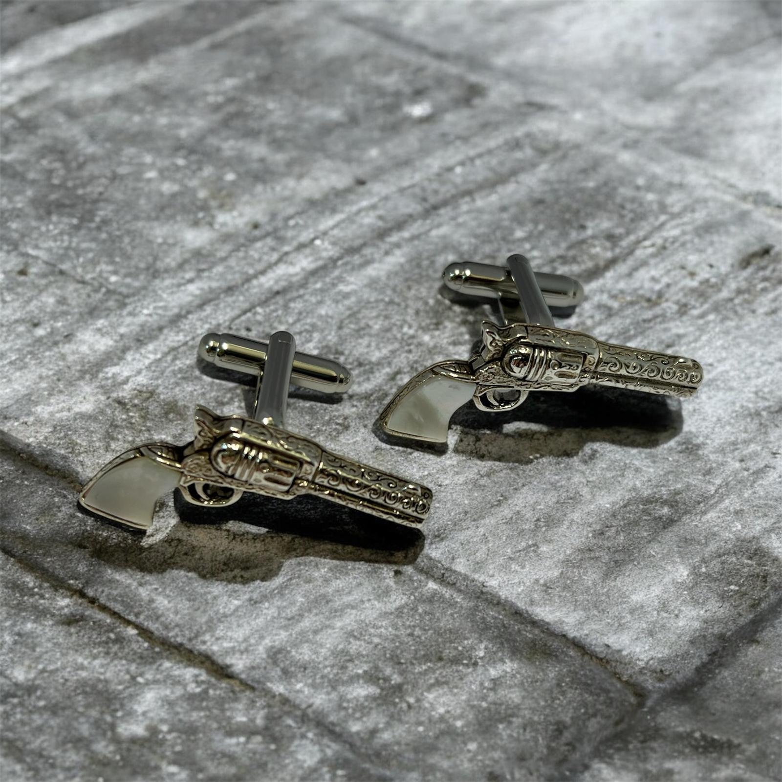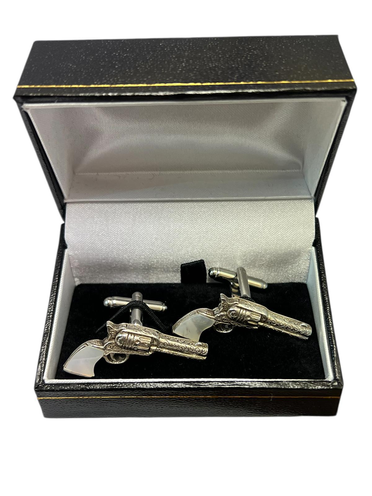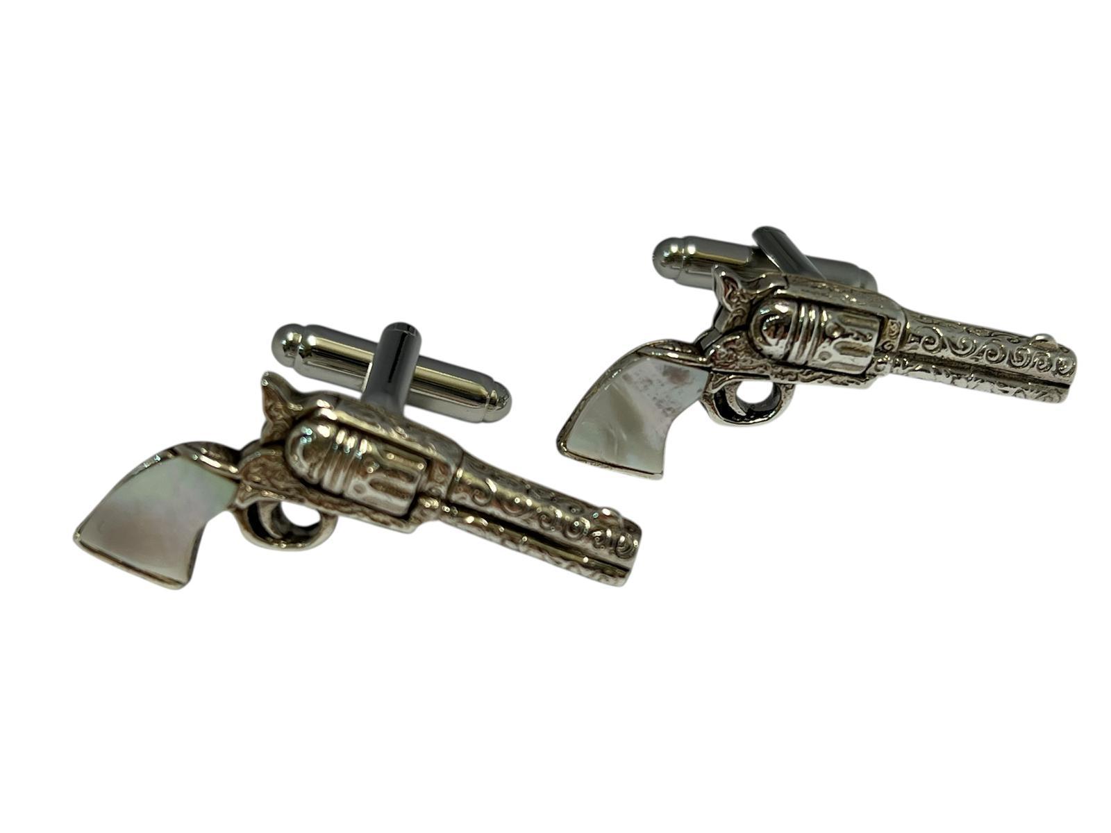 - Pair of Sterling Silver & Mother of Pearl (MOP) Pistol Cufflinks