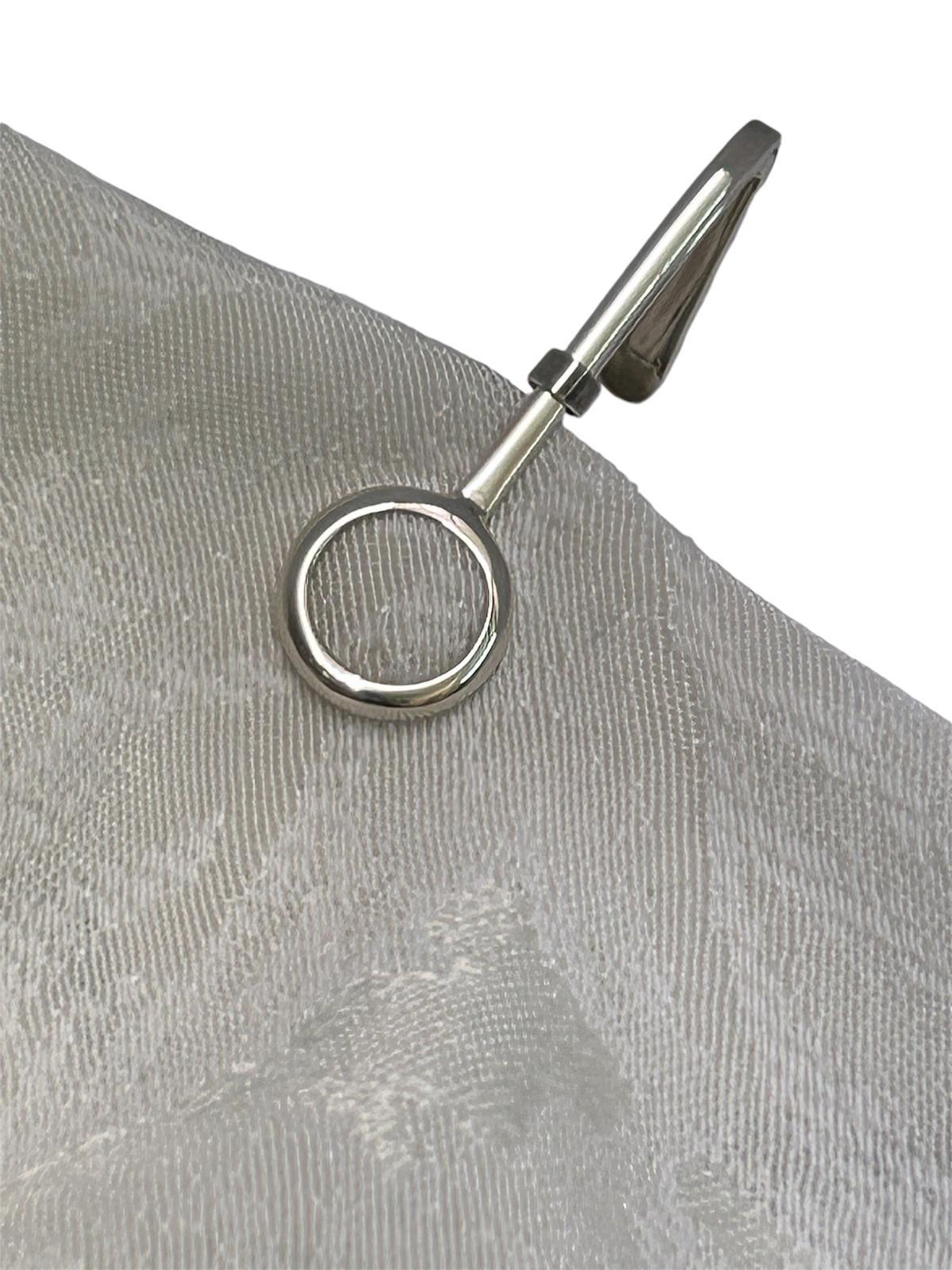 A lovely Sterling Silver Napkin Hook, based on the design that made napkin hooks popular generations ago. This item features a clip to hold your napkin and a hook to slide over your shirt collar in place.
