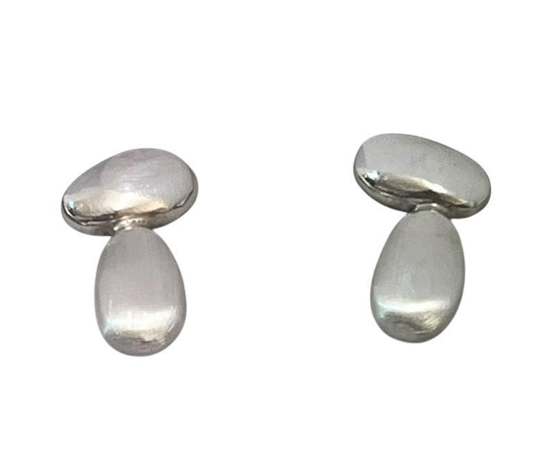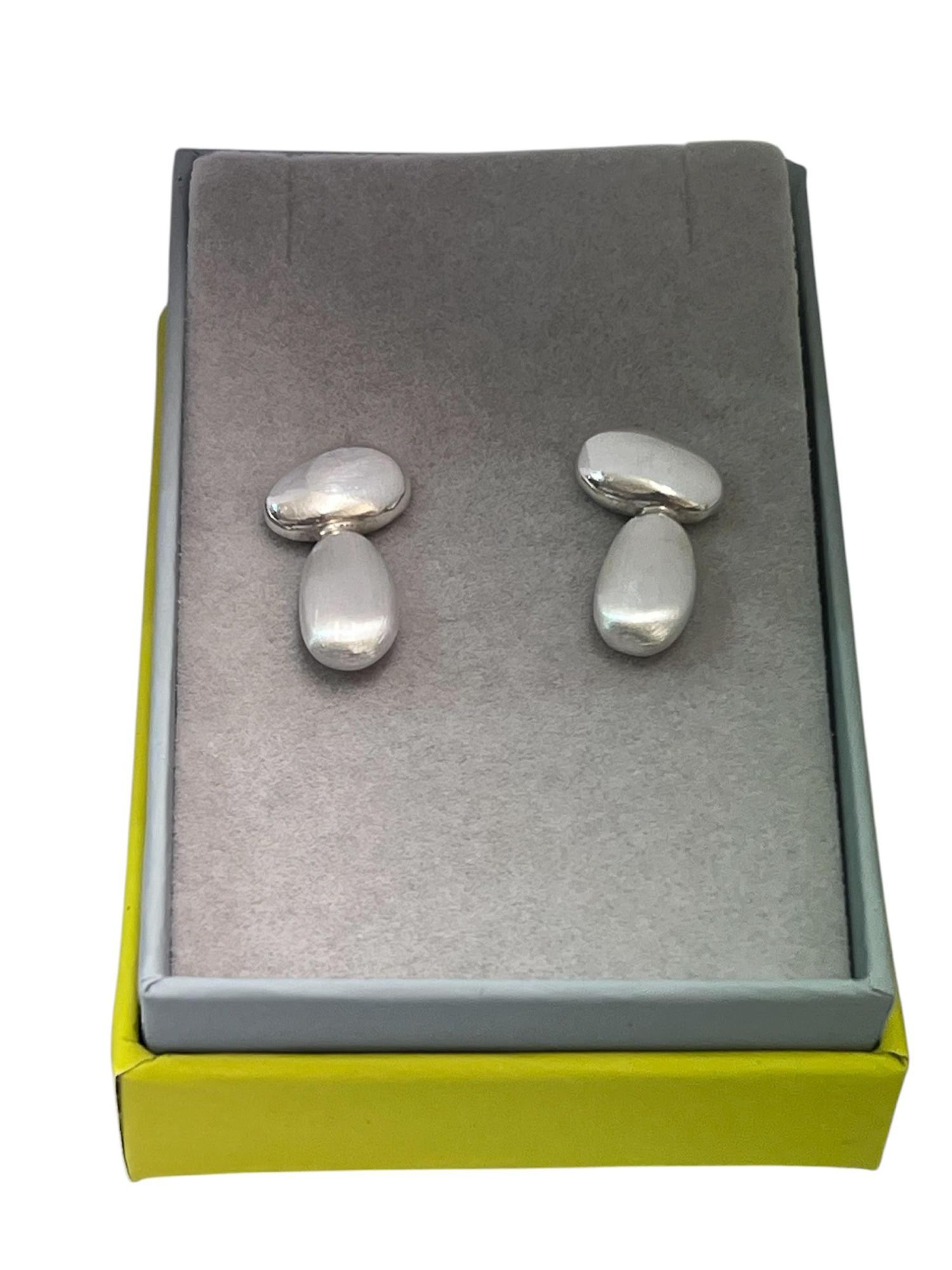 Inspired by the smooth elegance of river stones, these solid silver earrings feature a beautifully organic double-pebble design. Each earring is crafted from high-polish sterling silver and the bottom pebble has a brush finish, showcasing a modern yet timeless aesthetic. The fluid, rounded forms catch the light effortlessly, making them perfect for both everyday wear and special occasions.