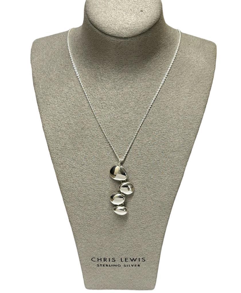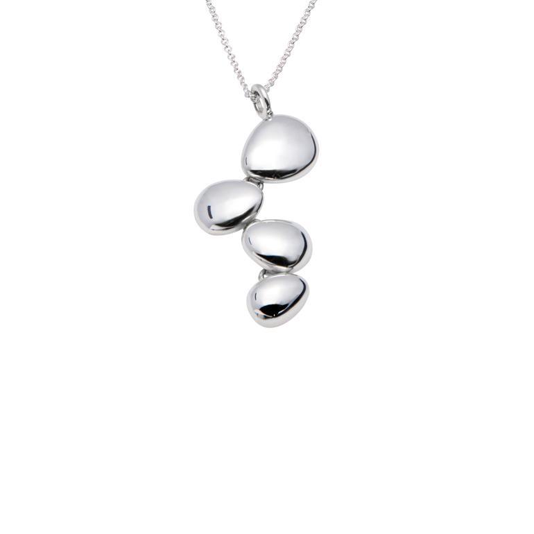A stylish & contemporary Solid Silver Polished 4 Pebble Pendant / Necklace on a Chain. This pendant has four polished pebbles cascading down the neckline. Inspired by pebbles on a beach which have been polished over time by the sea.