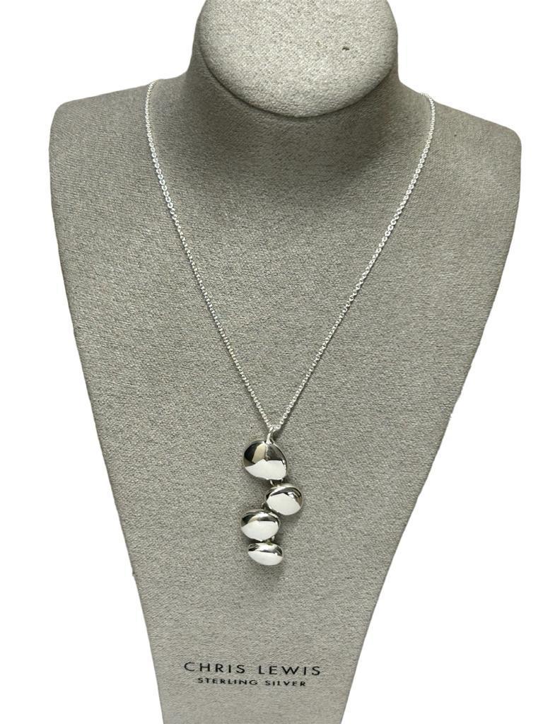 - Solid Silver Polished 4 Pebble Pendant on a Chain
