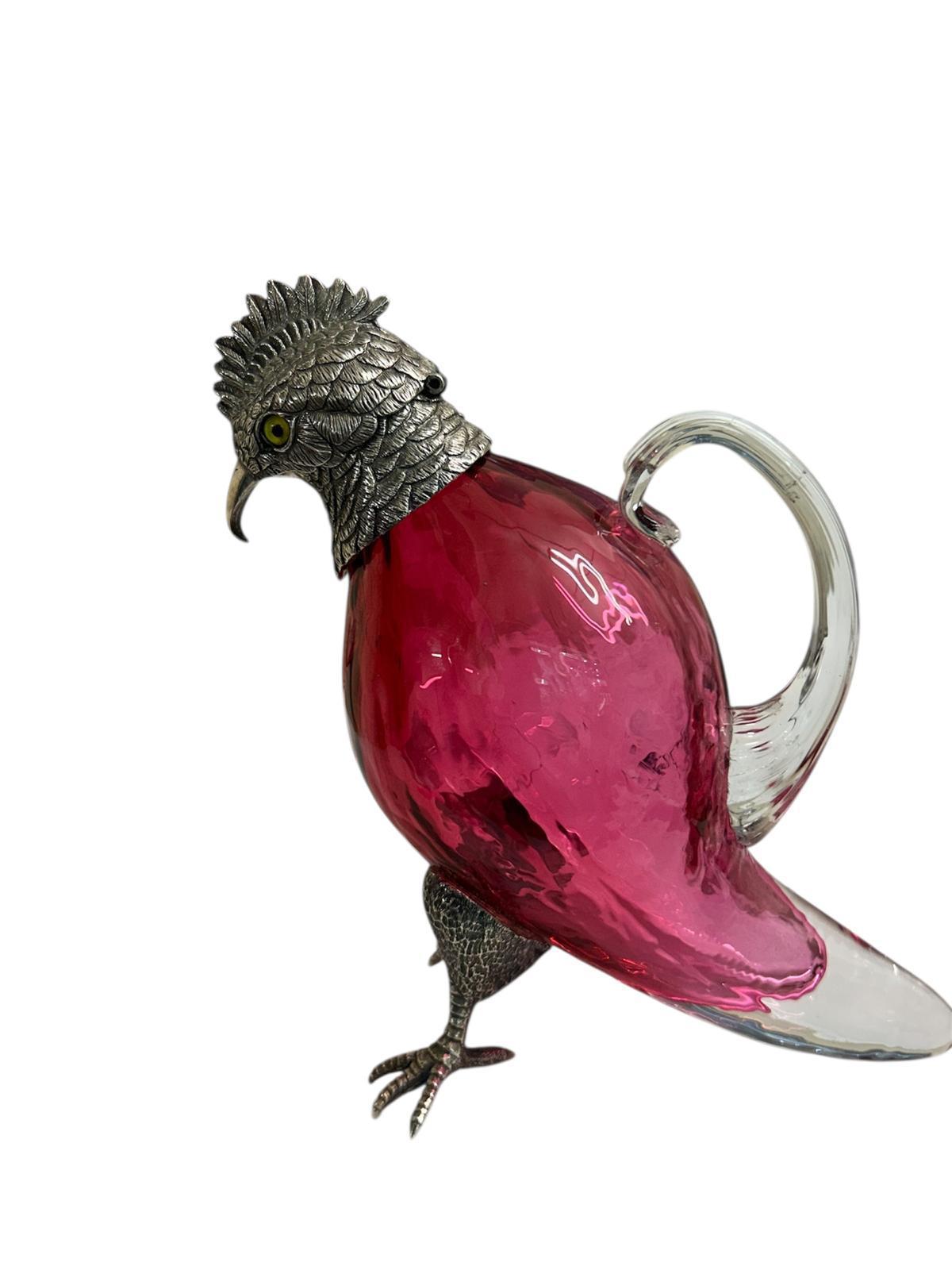 - Silver Plated mounted on Cranberry glass decanter, in the form of a Parrot / Cockatoo - Circa 1990