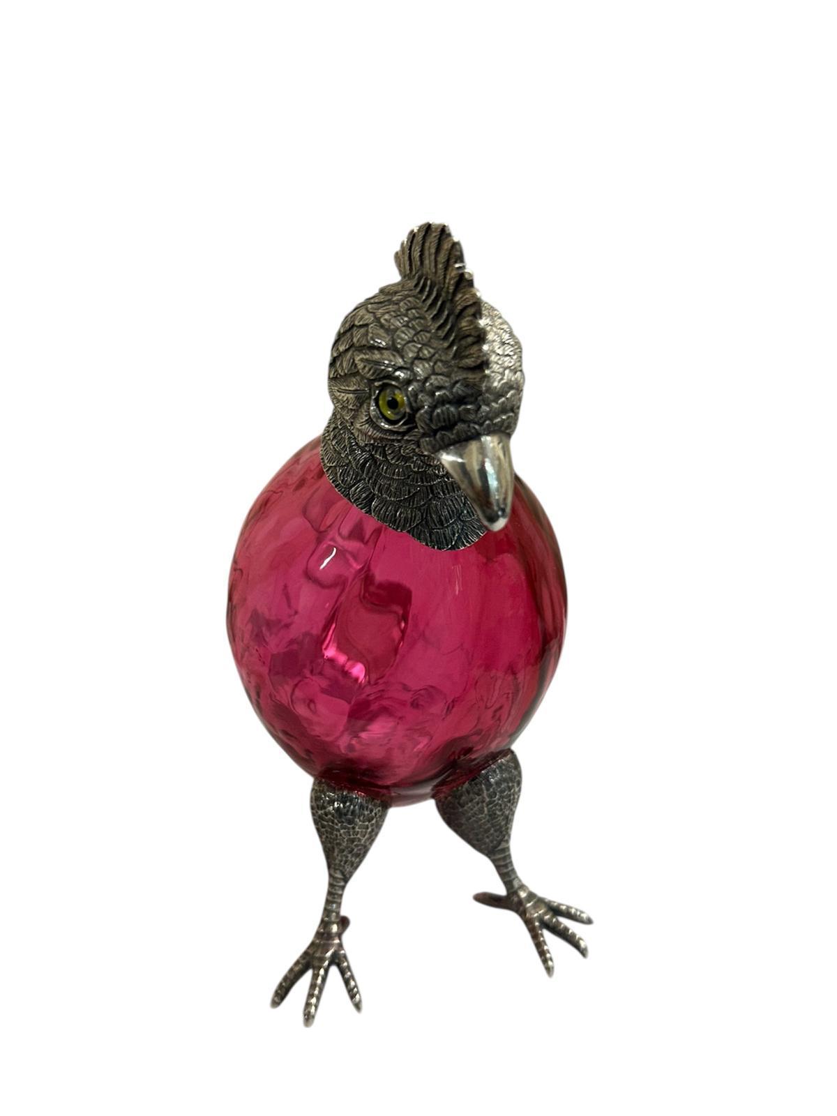 Silver Plated mounted on Cranberry glass decanter, in the form of a Parrot / Cockatoo - Circa 1990