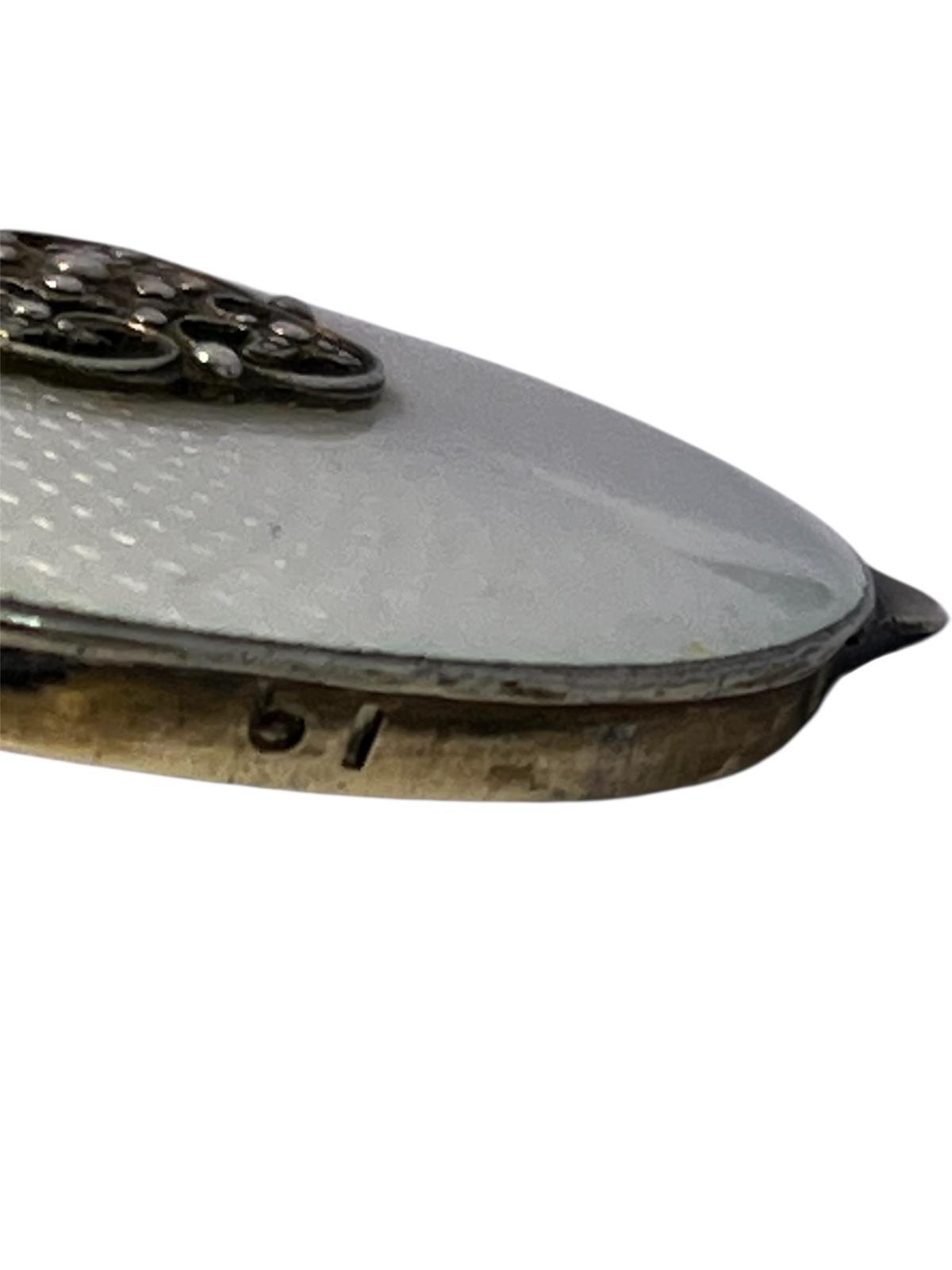 Both decorative and functional, this charming piece reflects early 20th-century vanity accessories and would make a desirable addition to any collection of antique silver, enamel objects, or personal accessories.