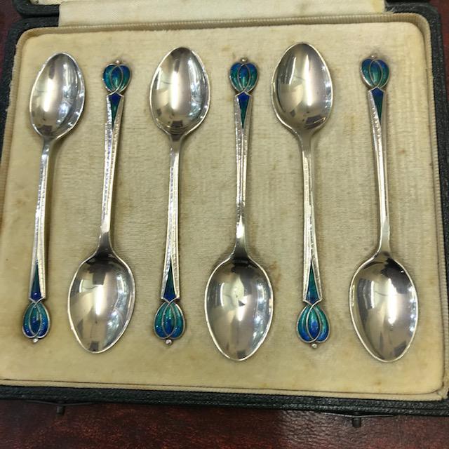 SET OF 6 LIBERTY ENAMEL SPOONS 1937