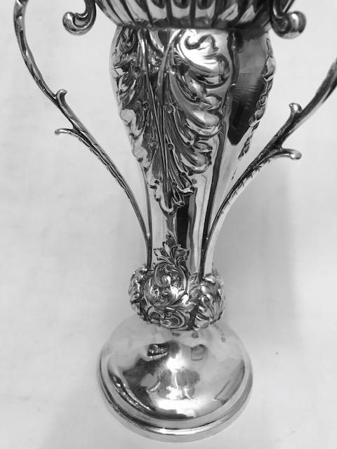 Solid Silver Chased & Fluted Vase With Three Handles.