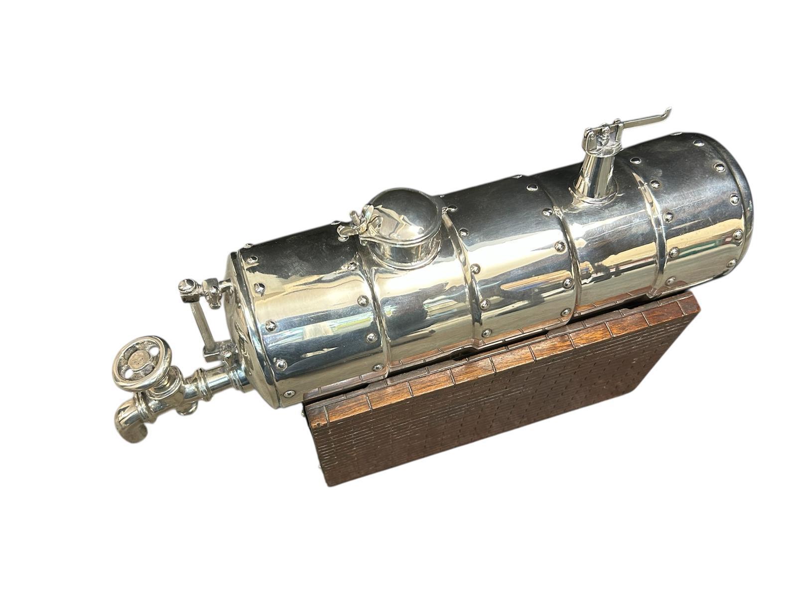 - A CONTINENTAL SILVER NOVELTY DECANTER CIRCA 1900 IN THE FORM OF A STEAM ENGINE BOILER