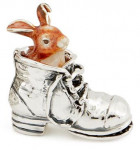 SILVER & ENAMEL PAIR OF ORANGE RABBIT IN A SHOE WITH EAR UP |