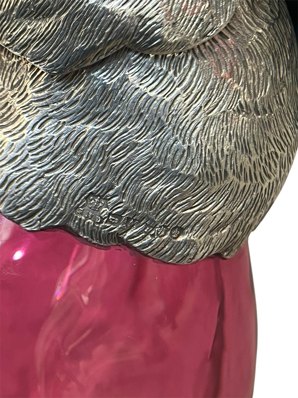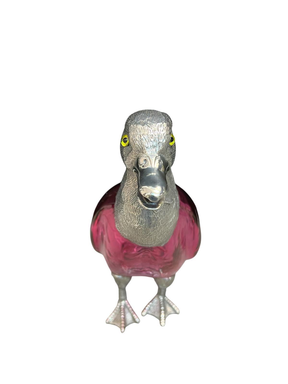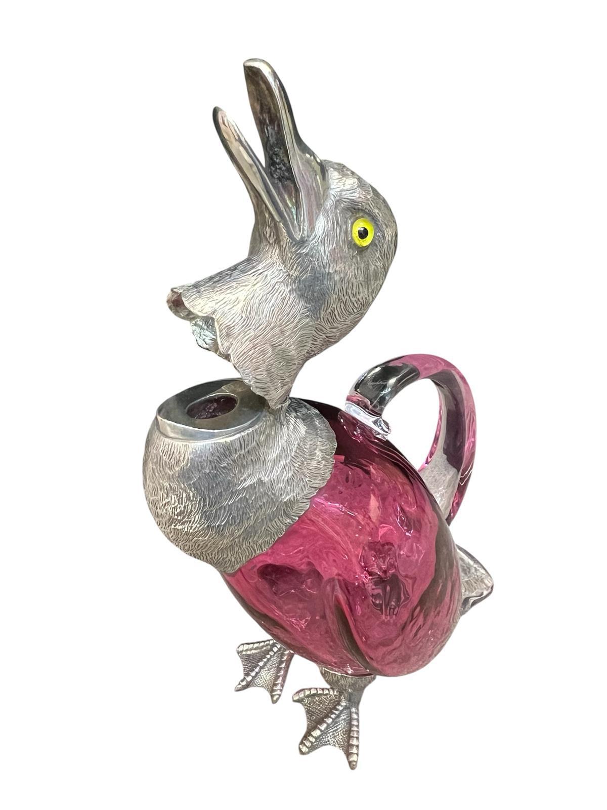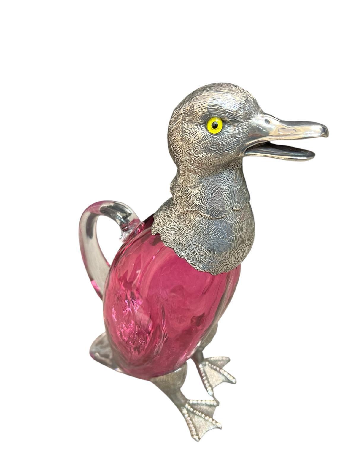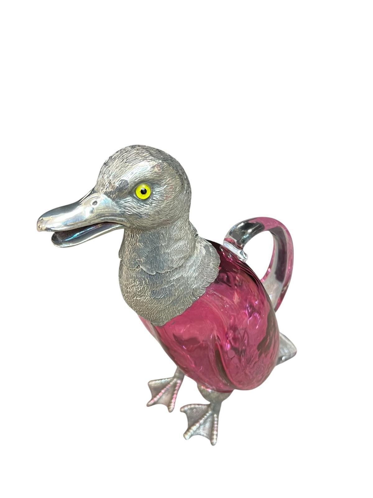 Silver Plated Duck Claret Jug - Circa 1990 The glass is red / cranberry colour