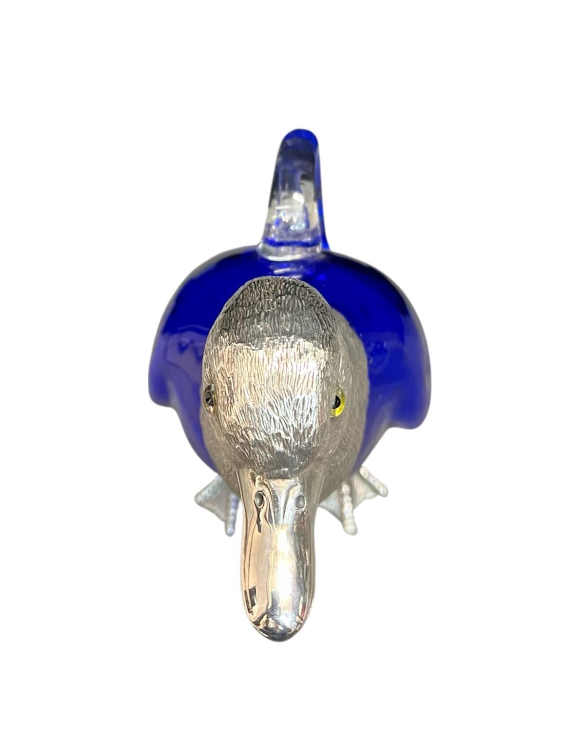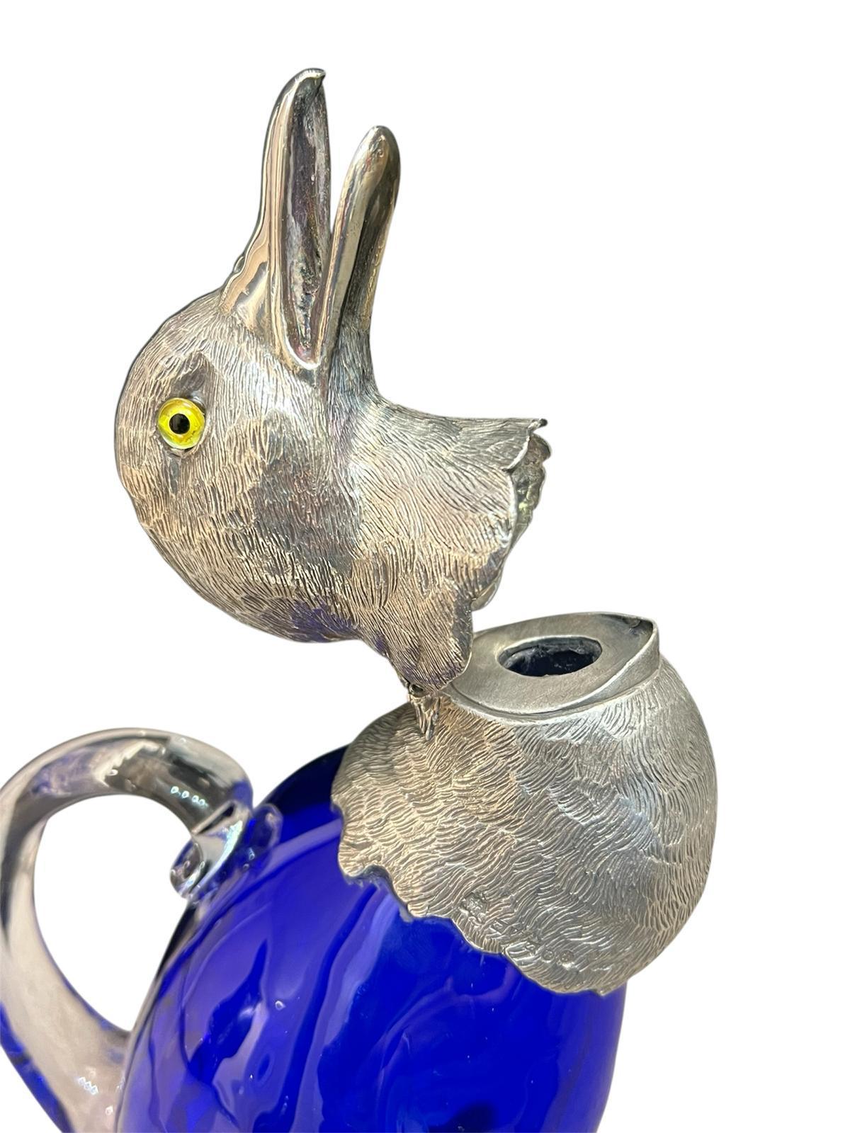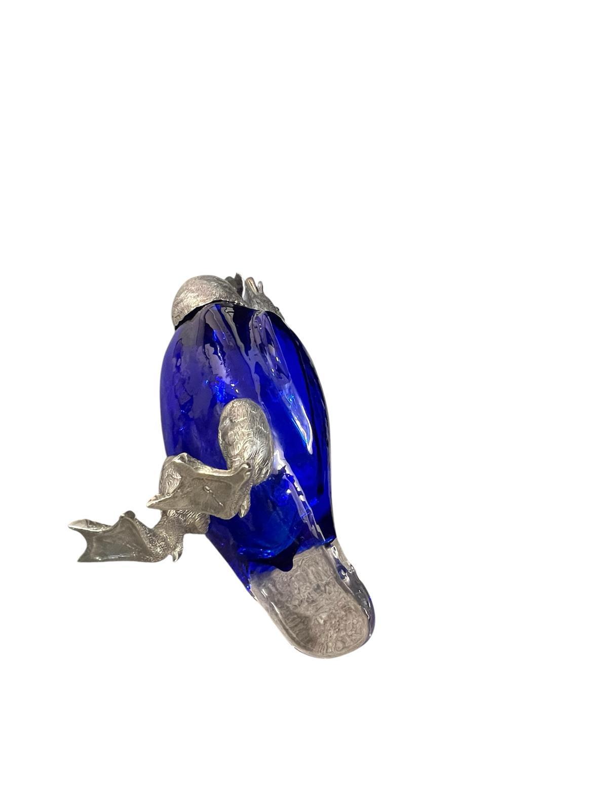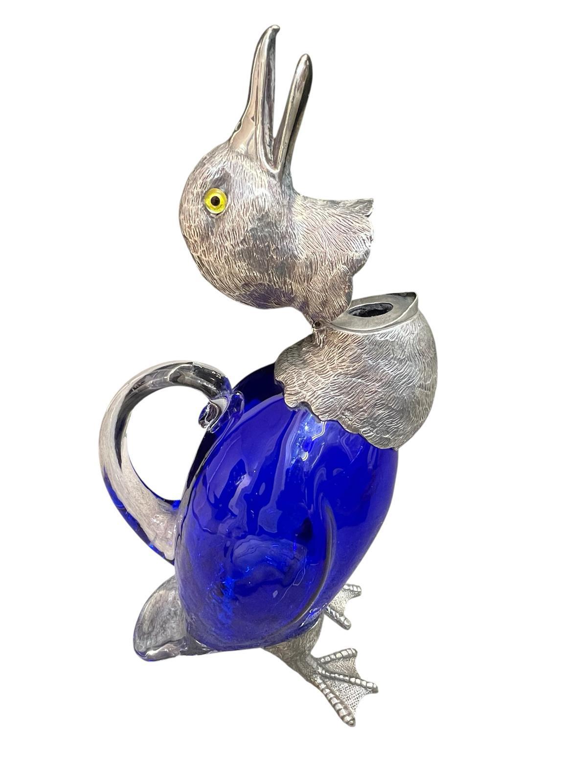 Silver Plated Duck Claret Jug - Circa 1990 The glass is blue colour