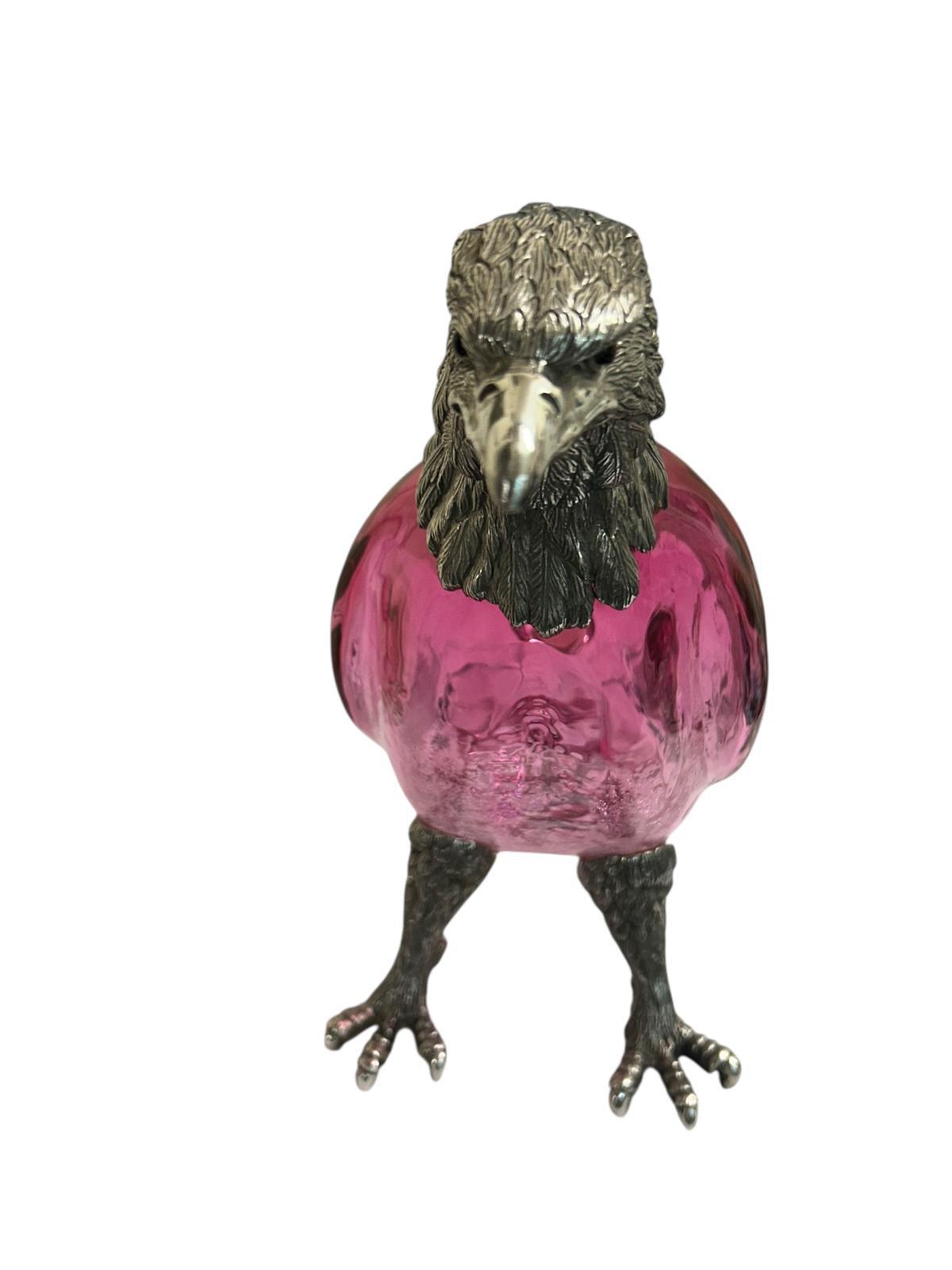 - Victorian style silver plated claret jug in the form of a standing eagle (red / cranberry glass)