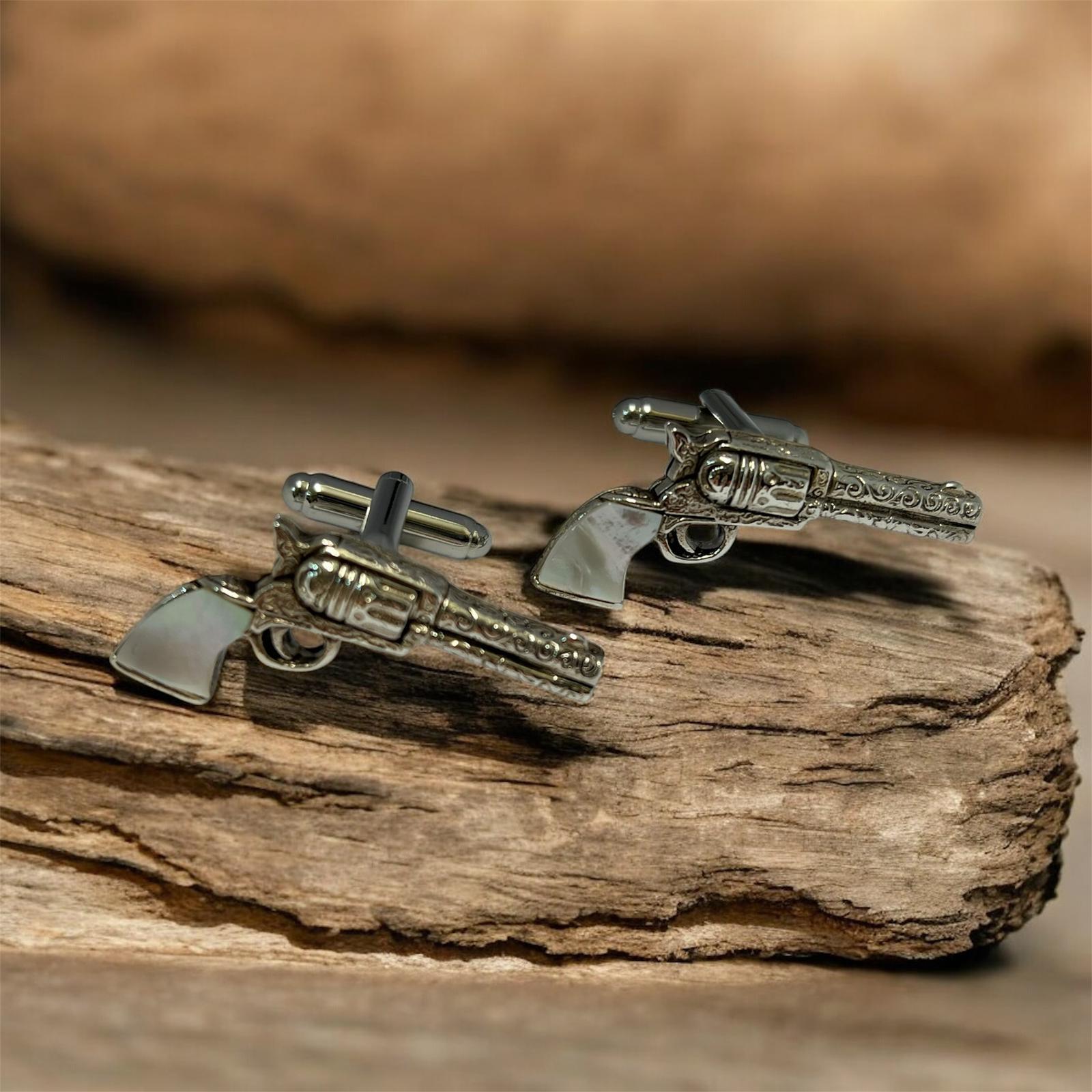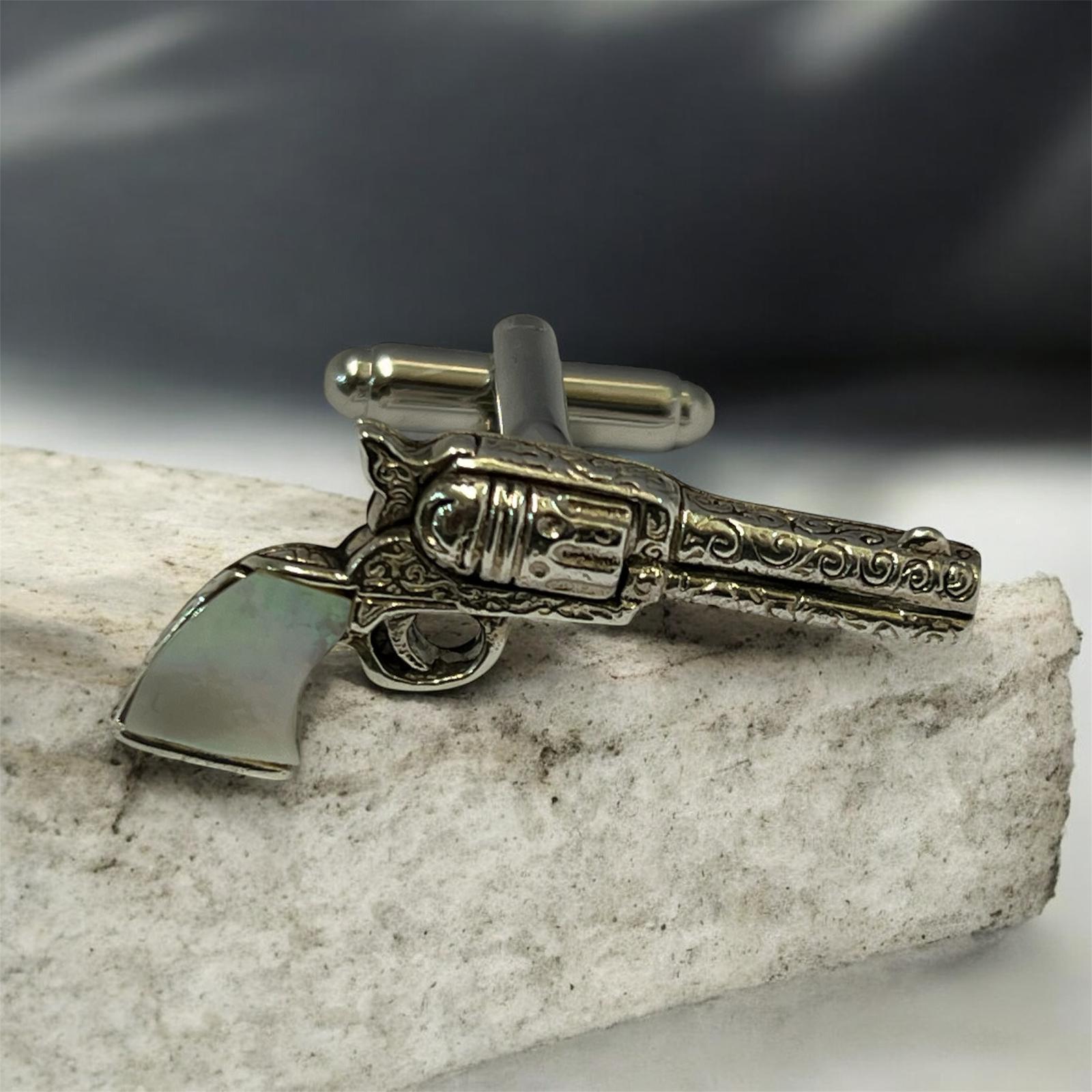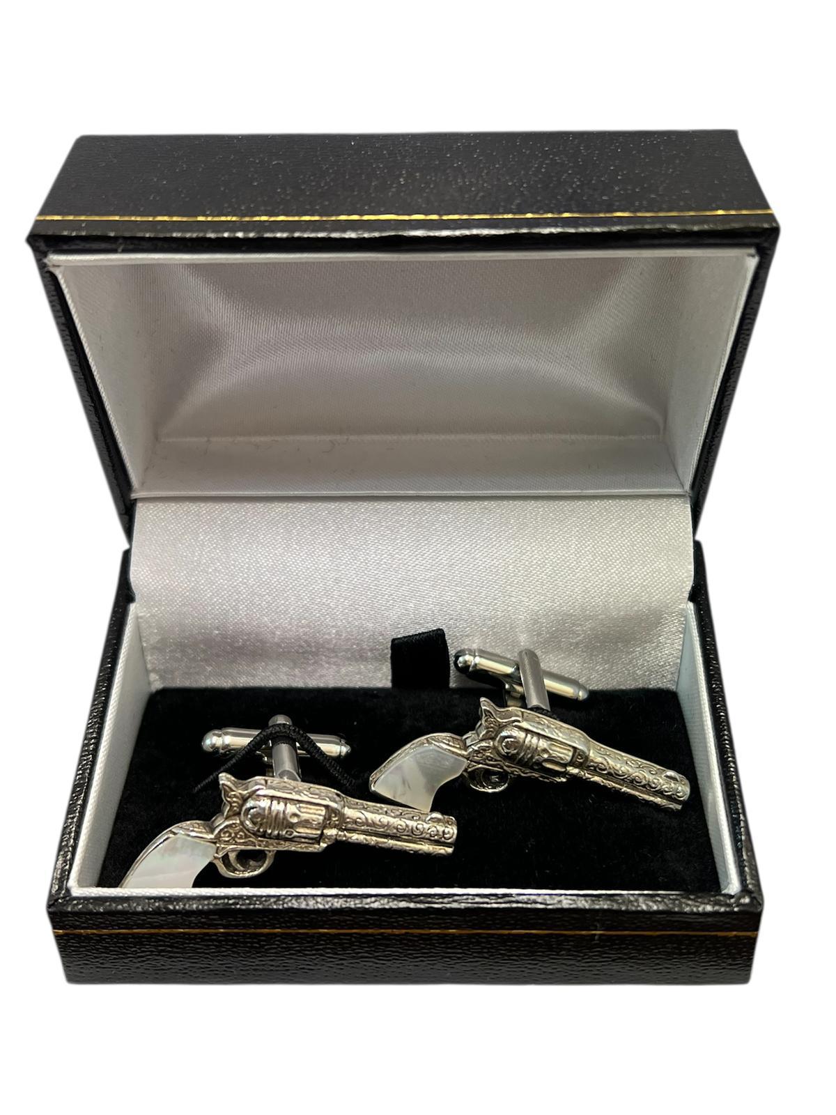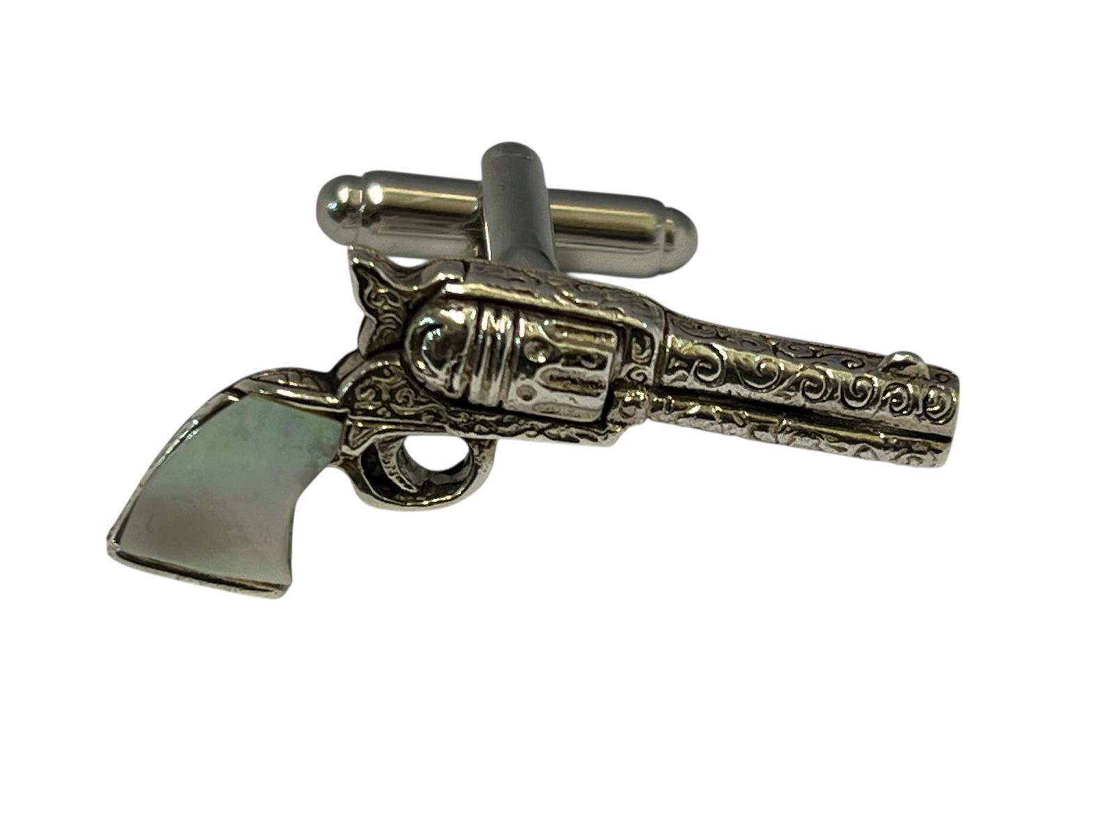 - Pair of Sterling Silver & Mother of Pearl (MOP) Pistol Cufflinks