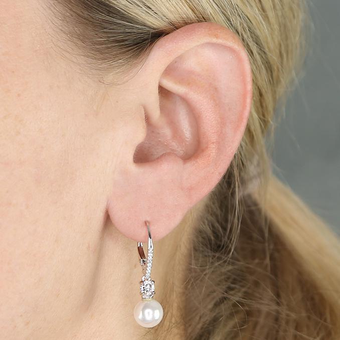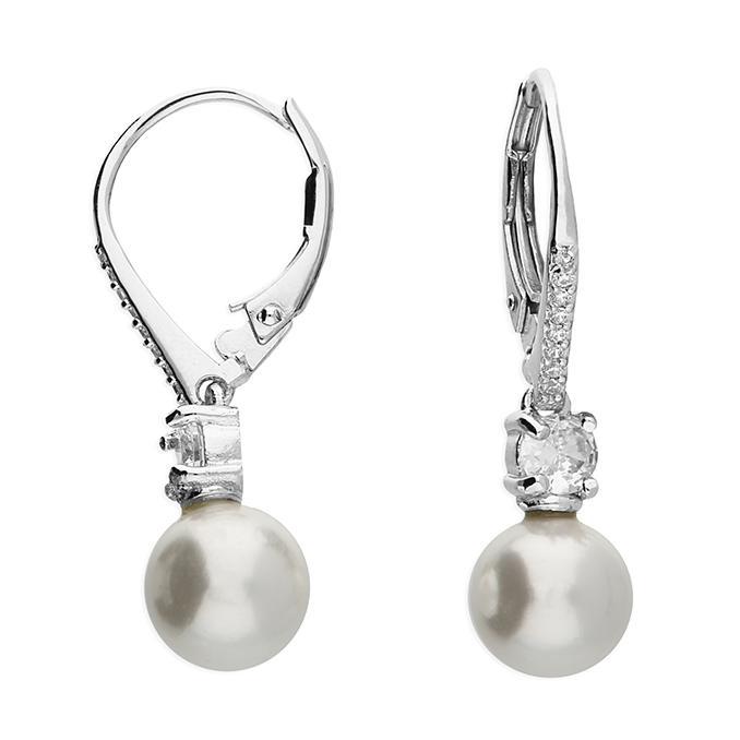 Sterling Silver Elegant Shell Pearl and CZ Earrings