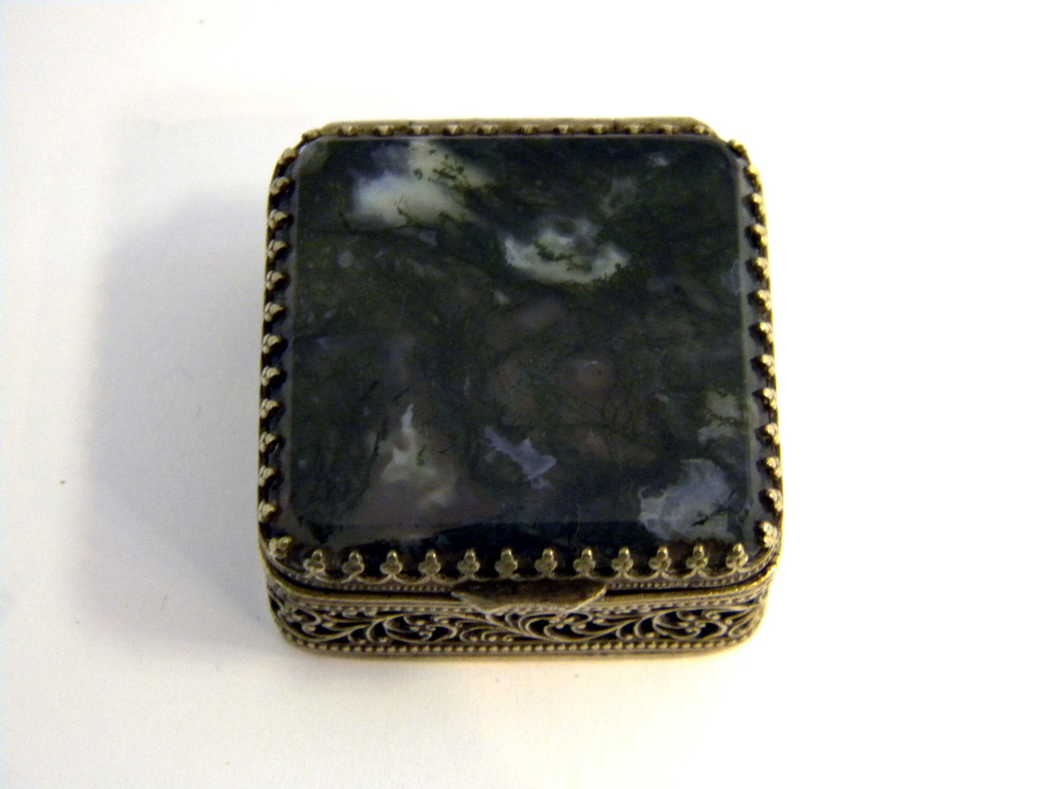 ANTIQUE AGATE & GILT METAL SQUARE BOX c. 1900 PILL BOX