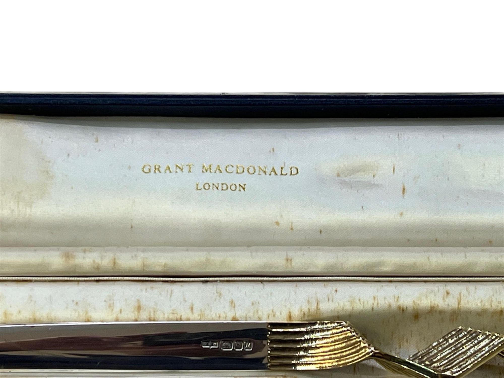 This elegant solid silver letter opener was crafted in London in 1986 by the renowned silversmith Grant MacDonald, a name synonymous with high-quality contemporary British silver. Presented in its original fitted case retailed by Grant MacDonald of London, it is both a practical desk accessory and a refined collectible.