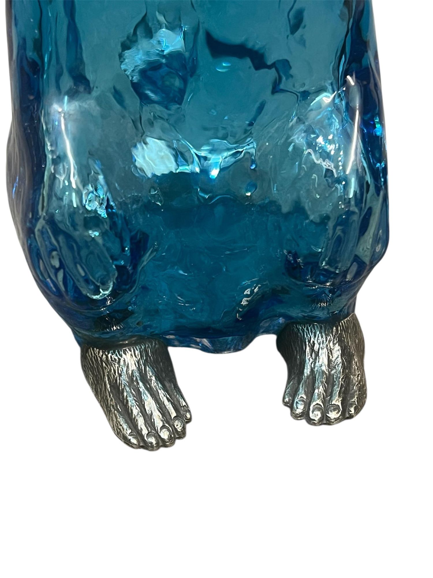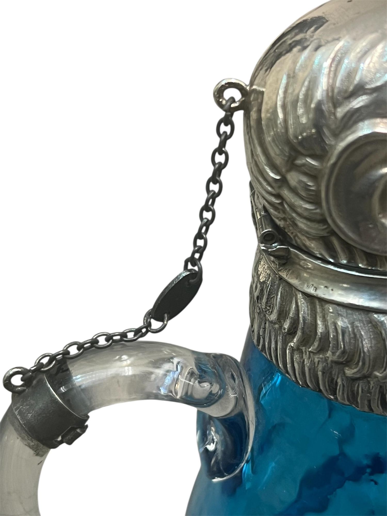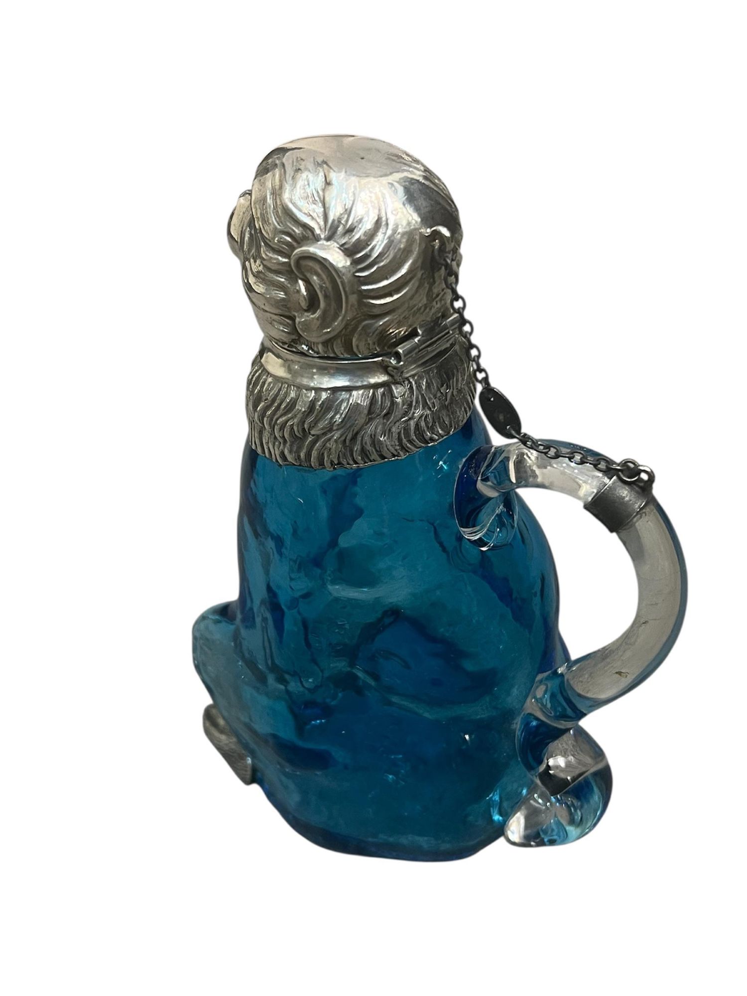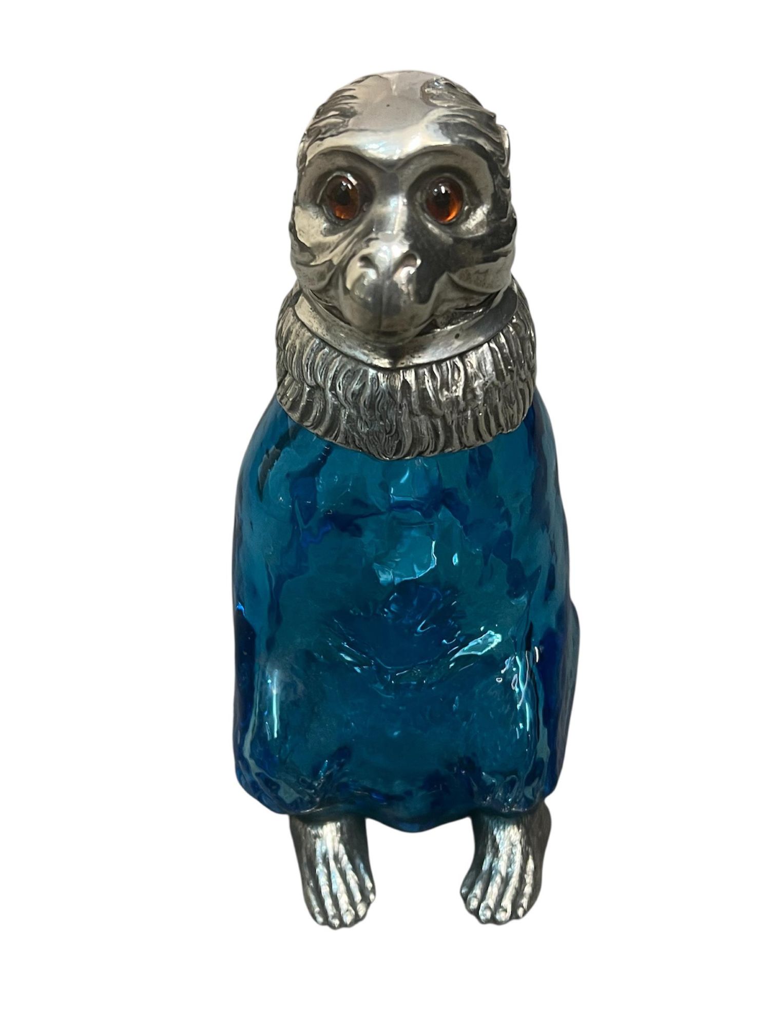 - Victorian Style 20th Century Silver-Plated mounted on Blue / Turquoise Glass Novelty Monkey Claret Jug