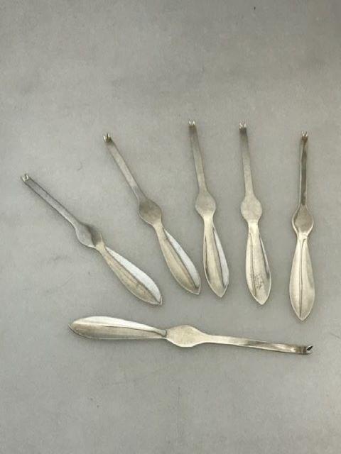 - SET OF 6 SILVER LOBSTER PICKS 1936