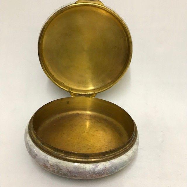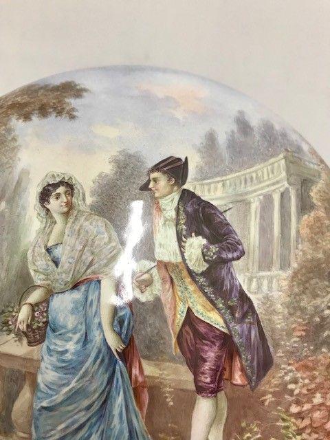 Large Round Viennese Gilt Metal Box of a Man & Woman In a Beautiful Garden picking Flowers.